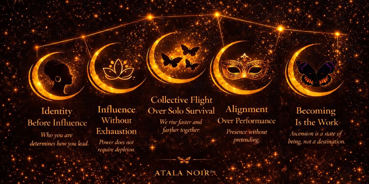 Atala Noir™ rejects isolation as a leadership strategy. This pillar affirms that growth, influence, and legacy are strengthened through community, shared wisdom, and intentional sisterhood. Ascension is not a solo journey—it is collective flight.